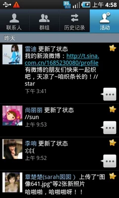 ▲而这些SNS应用中的联系人也可以被同步进电话本,从而对其进行更加紧密的关注和联系。