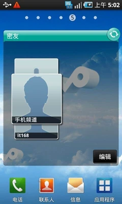 在三星桌面插件中,我们发现了三星SPhone联通版I9088一个异常强大的功能,就是它可以支持目前极为流行的SNS互联网应用(开心网、人人网)与手机联系人系统的高度整合。而该功能在电信版I909上却并没有实现。(不知道以后会不会通过软件升级来支持)用户在登录了自己的开心或人人账号以后,就可以通过社交网整合插件来方便的进行SNS应用了,非常方便。