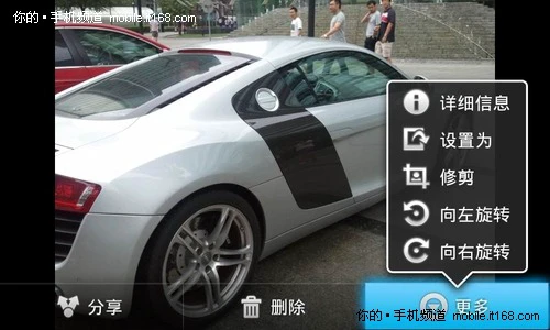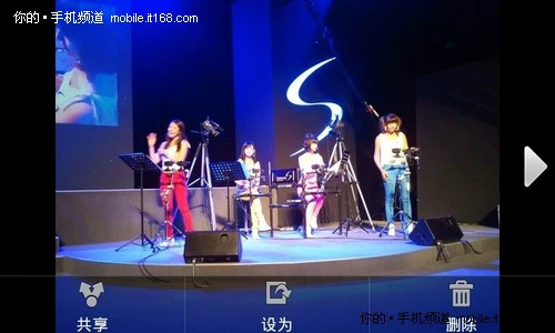▲照片浏览时可以进行分享、设为(壁纸或联系人)操作,支持多点触摸缩放。