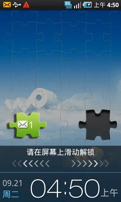▲有趣的拼图式短信快读界面,拼合上图块即可直接读取短信,不必再解锁主屏。
