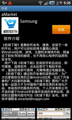▲内置了三星自家的软件商店--三星Apps,不过目前该商店中可选的资源还比较少,需要以后慢慢丰富。当然,用户也可以自行安装目前比较流行的几大软件市场来方便自己日后的应用。
