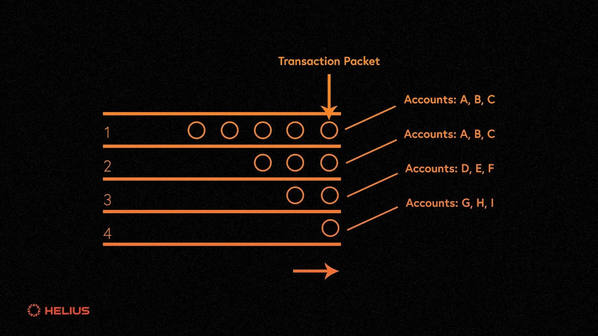 每个线程操作其自己的队列,独立地对数据包进行优先处理,而不知道其他线程正在处理的数据包。每个线程不断地循环从开始到结束,尝试锁定和执行交易。当一线程完成其当前循环时,它将收集更多的数据包并再次启动循环。