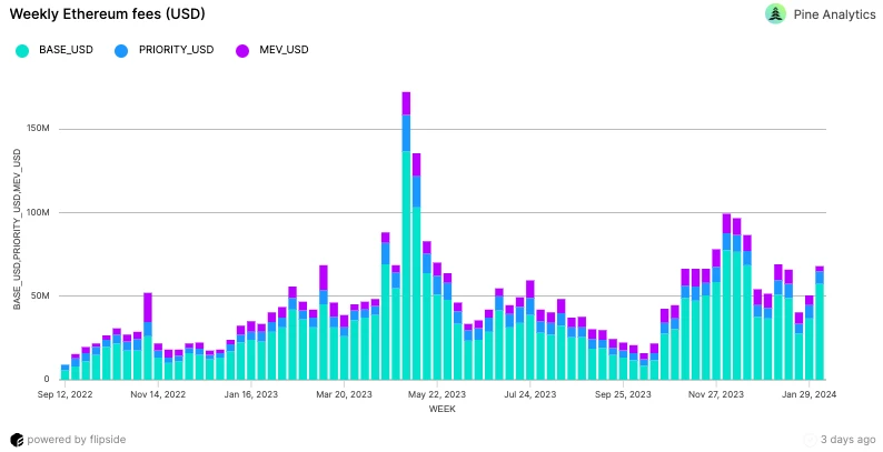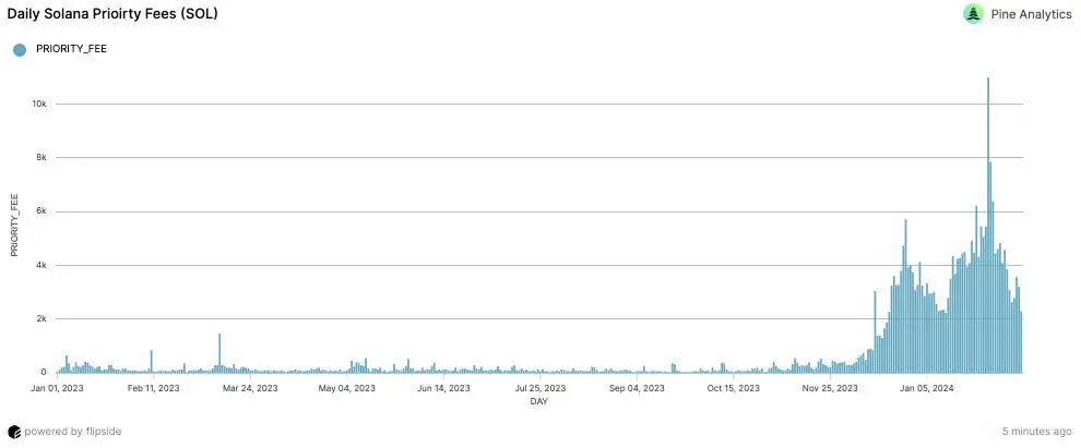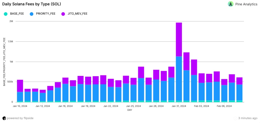 目前,按照当前费率,该网络每年为验证者产生约 1.66 亿美元的优先级费用收入。为了在通货膨胀达到其终端费率时保持相同数量的盈利验证者,该网络需要将此收入增加到最多 5.66 亿美元。考虑到该网络预计将在大约七年内达到其终端通货膨胀率,因此有充足的时间来提高优先级费用收入。考虑到仅在今年 12 月,优先级费用就经历了 1000% 的大幅增长,因此此目标似乎可以实现。