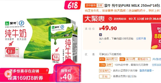 端午节前恰逢高考,不少家长选择绿豆糕和端午粽一起买,是为了取糕粽高中(zhòng)的好彩头。同时,为了给孩子补充高考期间的所需营养,苏宁超市牛奶类产品环比增长121%,其中最受消费者欢迎的产品为蒙牛纯牛奶。恰逢苏宁超市618及端午节活动,苏宁超市给出了满减优惠,40元到手一箱16盒装的蒙牛纯牛奶,还是相当划算的。
