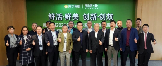 2021生鲜战略暨百日攻略启动会上,苏宁家乐福与多家生鲜企业战略合作
