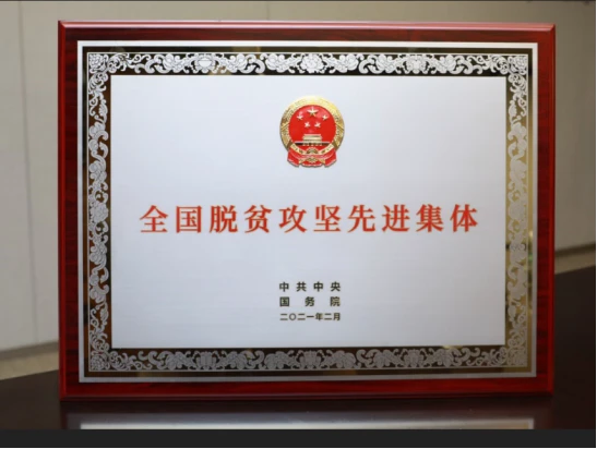 (图注:苏宁荣获中共中央和国务院颁发的“全国脱贫攻坚先进集体”)