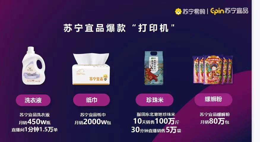 以苏宁宜品品牌为例,作为苏宁易购社交电商公司的DTC产品线,在此前社交联盟的渠道推广基础上,现下可叠加“鹊桥联盟”直播渠道打造爆款,扩张自有品牌生态圈。据了解,依托“鹊桥联盟”和社交联盟,以及苏宁易购线下约16000家零售店广场、家乐福超市等,苏宁宜品年销售规模已突破10亿。