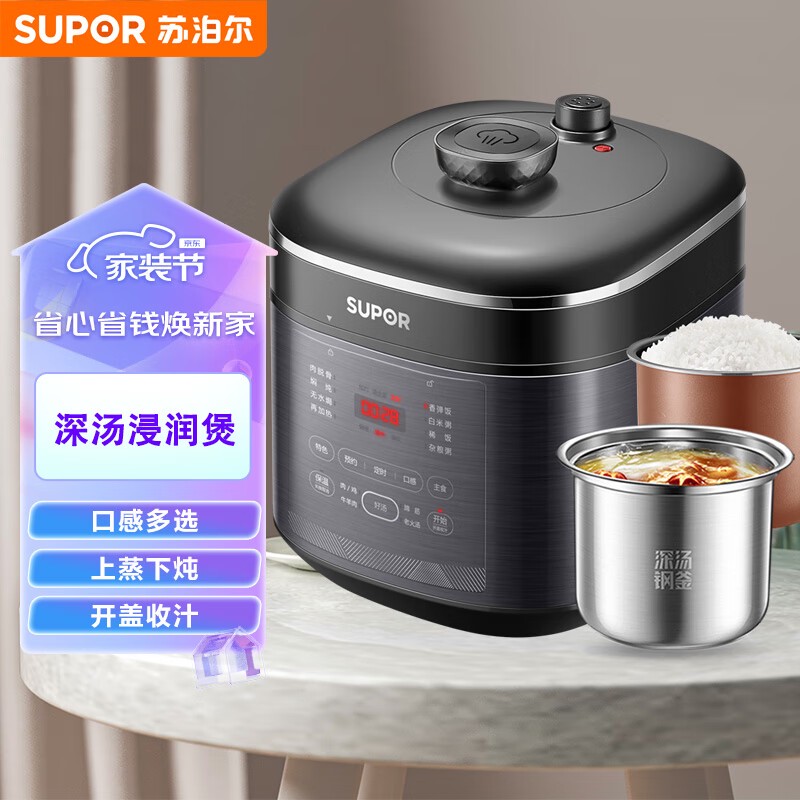 苏泊尔SY-50FC8708电压力锅采用双胆设计,能够更加快捷地完成烹饪。双胆高压锅能够在短时间内达到高温高压的状态,让食材更加容易熟透,同时还能够保持食材的营养和口感。而且,它还拥有大屏面板显示和不锈钢厚釜设计等多种优势,让你在烹饪时更加方便。