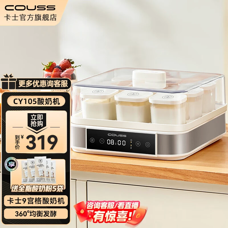 总的来说,卡士CY105全自动酸奶机米酒机是一款功能齐全,操作简便,安全可靠的家用电器。如果你对酸奶或其他发酵食品有需求,不妨考虑一下这款酸奶机。
