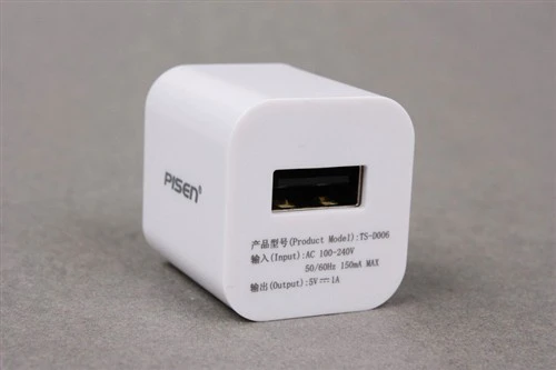 本次到达评测室的两款迷你充电器型号为TS-D006和TS-D007。先来看看D006这款充电器。品胜产品的包装保持了一贯精致的作风,包装上的产品说明详细易懂,用户可以一目了然的了解到产品的特点和相关信息。用剪刀打开密封的包装,D006充电器滑落出来。它是那么小巧,以至于差点没拿住跌落。不过别以为小巧就是缩水。这么小的充电器放在手心还是可以感受到一些份量的。这么小个充电器,再配上一根不需太长的USB线,可以说充遍天下电子设备是没问题的了。而这两样东西占据的地方可以说是很小的,一个衣服口袋就可以装下,真正做到了随身携带而且不会成为累赘。