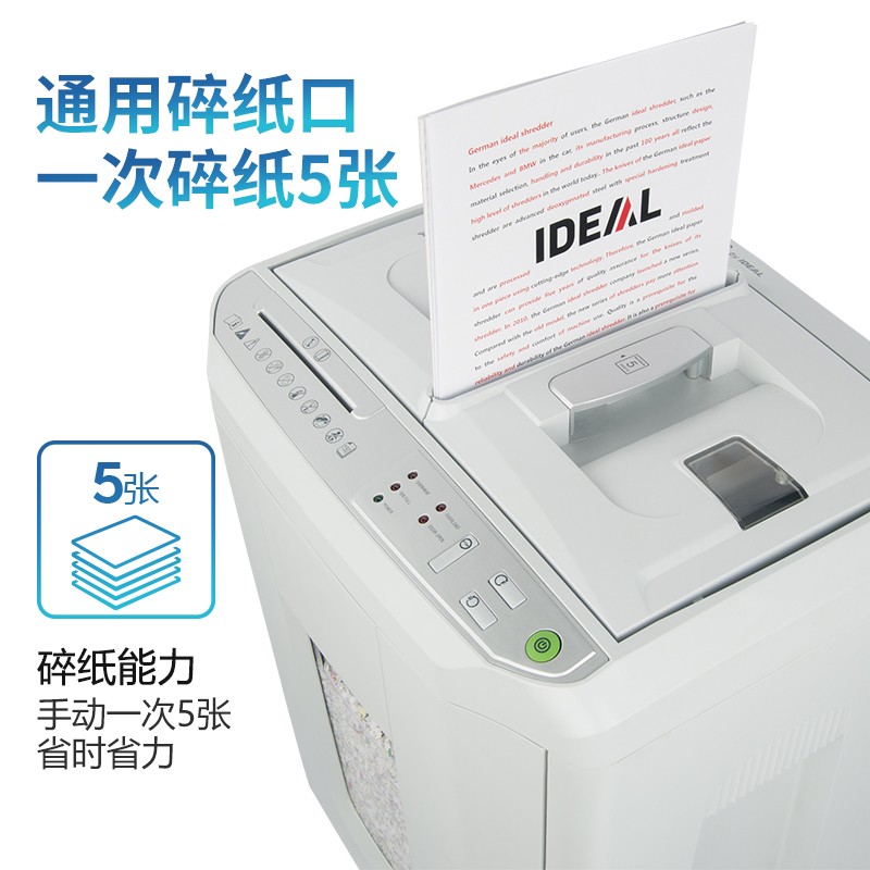 总的来说,IDEAL 8280CC碎纸机是一款性能出色,工作效率高的碎纸机,非常适合需要大量碎纸的办公环境。而且,它的设计人性化,操作简便,确实是一款值得推荐的办公设备。
