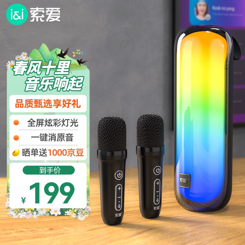 索爱(soaiy)S-58max 麦克风音响一体带话筒K歌无线便携式蓝牙音箱唱歌神器家庭KTV自带声卡