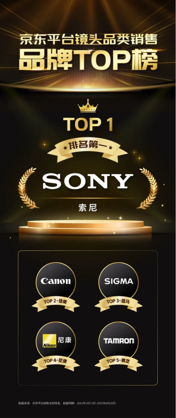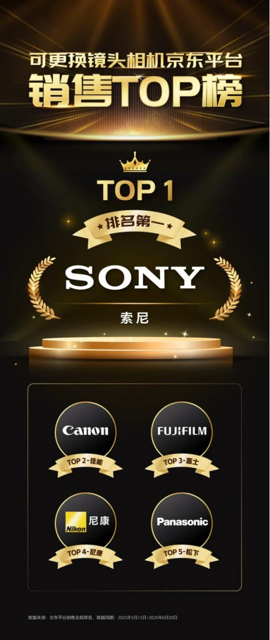 2025年618期间,中国数码相机线上市场整体保持增长趋势。根据天猫平台数据,数码相机行业整体同比增长超50%。在此次大促中,索尼影像产品在多个品类中表现突出:在天猫平台,索尼分别位居数码相机、微单相机及相机镜头品牌榜榜首;在京东平台,索尼则在可更换镜头相机和镜头品牌销售榜单中双双登顶,部分核心产品销量表现亮眼。
