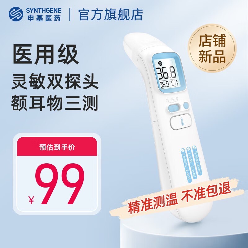 申基医药 (SYNTHGENE)耳温枪电子体温计 婴儿幼儿额温耳温物温家用医用发烧电子数字体温测温仪 【升级款】耳温额温物温三测