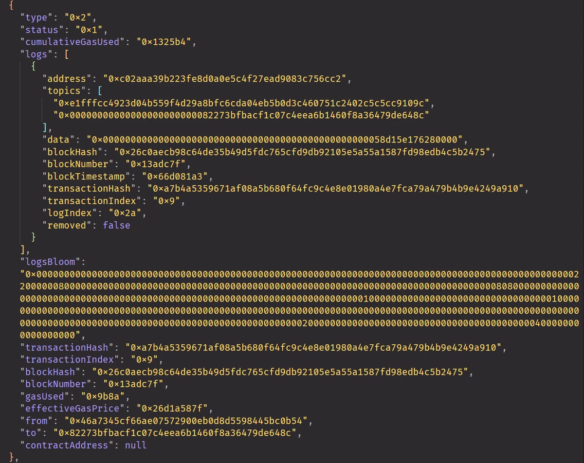 如果你探索原始链上数据,你会注意到函数输入、输出和日志中的数据看起来与在 Etherscan 上看到的内容差别很大。主要挑战在于缺乏上下文——每个字段或值的意义——以及所有内容都以字节(十六进制格式)存储。
