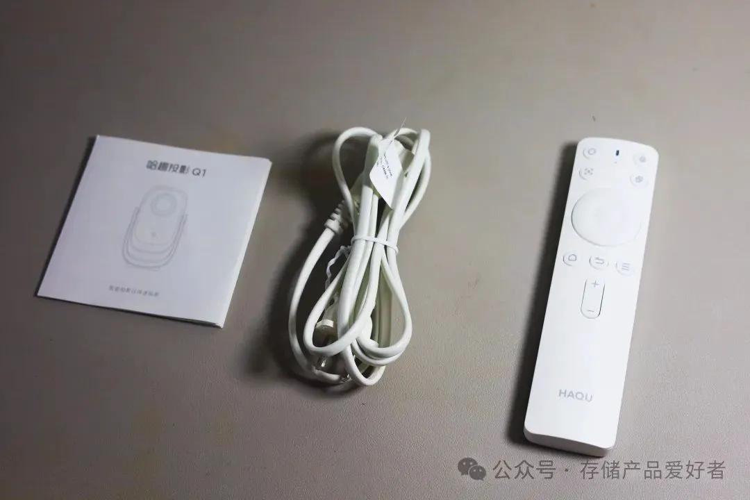 哈趣Q1投影仪拆开包装,里面很简单。投影、说明书、供电线、遥控器,另外厂家还贴心的送了2节遥控器电池。附件如此的简单,使用必然不复杂。
