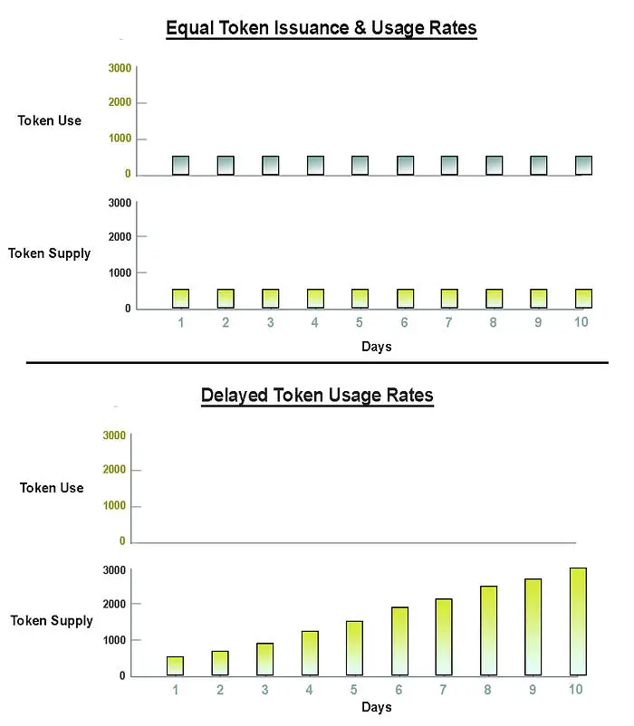 为了简单起见,让我们假设星巴克每天销售 100 杯咖啡,每杯收入 3 美元(每天总收入 300 美元)。现在,想象一下星巴克通过发行数字咖啡券作为通证来增强这一点。这些优惠券的消费速度成为通证经济中一个非常重要的变量。