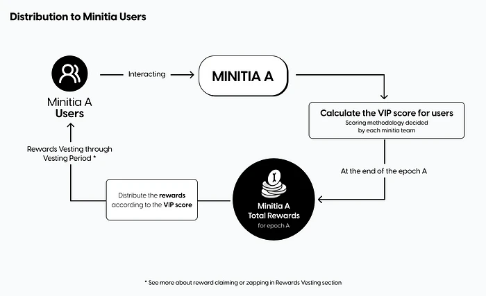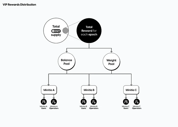 每 2 周,一部分 VIP 奖励将分配给符合条件的 Minitia 及其用户。这些奖励分为 2 个存储桶:余额池和权重池,基于 L1 治理设置的比率。