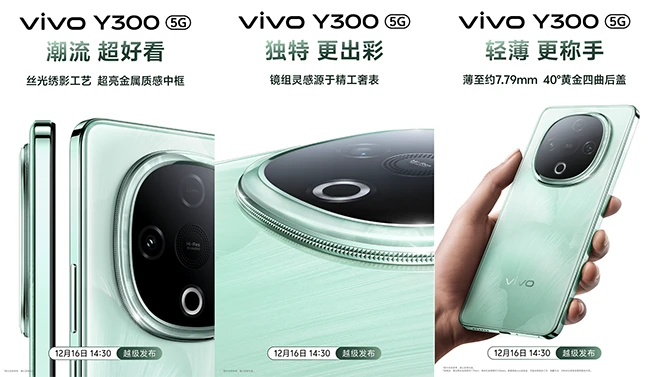 超强外放、超长续航、超亮护眼屏幕、旗舰外观设计、轻薄圆润手感,全新vivo Y300亮点颇多,必将为用户的生活、娱乐带来更多便利与乐趣。12月16日,让我们共同期待全新Y300的正式发布吧!