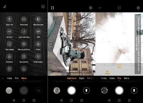 同时华为的拍照模式里面还有许多功能选择,比如颜色设置中有标准、柔和和鲜艳三种选项。同时华为P30 Pro还能通过AI技术智能识别场景,从而自动调整曝光及颜色风格。