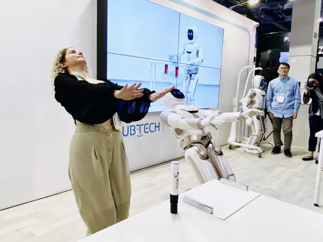 2019年CES上,Walker凭借开冰箱、递伞、关门、跳舞等一系列灵活的家庭服务表现广受好评。今年,Walker作为“家庭智能助手”,在本届CES现场展示了推餐车、瑜伽互动、开瓶倒水、写字画画等技能,实现了运动性能、柔性交互、环境感知等方面的算法迭代和功能提升。