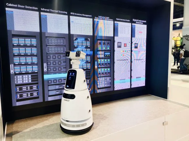 AIMBOT(智巡士)在CES现场模拟了机房环境中的工作情况。沿着设定好的巡检路线行进时,AIMBOT(智巡士)分别对机柜的指示灯、指针仪表、数字仪表及RFID条码进行扫描识别,展示设备检测、资产盘点等功能。它不仅可以对机房机柜上的指针仪表和数字仪表的数值进行读取、检测机柜内设备的指示灯、温度以及机柜门的开关状态等,还能通过RFID技术实现对机柜内外的全部设备进行无人化的资产盘点,同时依据对机房内的环境温湿度的监测数据生成3D热力图,依据针对不同区域的热成像云图,协同空调中控系统,智能动态调节空调温度和风力,节能减耗。当检测到异常时,AIMBOT(智巡士)会及时告警管理人员,有效地预防设备宕机和火灾等隐患。