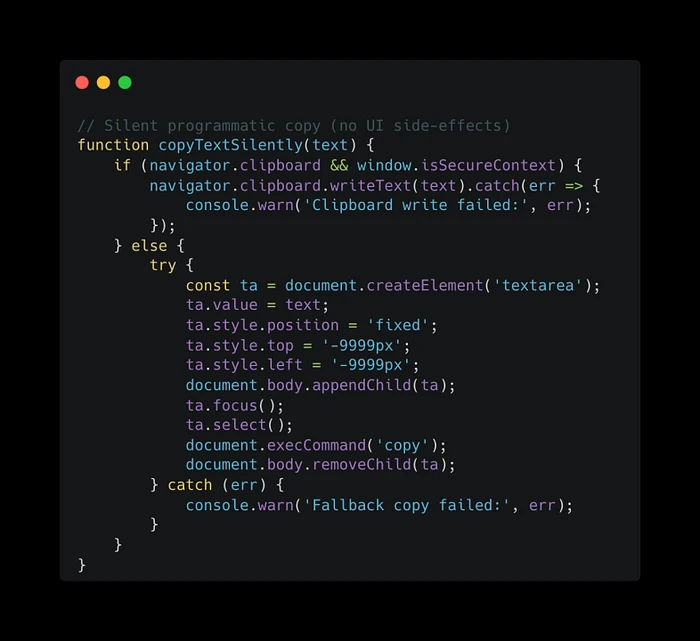 在copyTextSilently()函数中:
