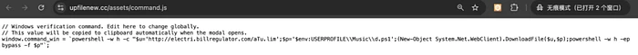 在command.js中,window.command_win被定义为从远程服务器下载恶意脚本,并通过PowerShell隐蔽地执行它: