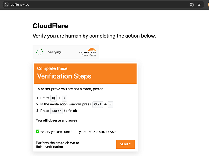 当受害者点击复选框开始验证时,网络钓鱼网站会在不知不觉中将恶意命令复制到他们的剪贴板中。然后,会提示受害者按下特定的键,从而触发恶意软件的下载和执行。