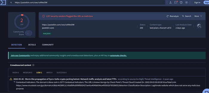 - 恶意Pastebin URL: