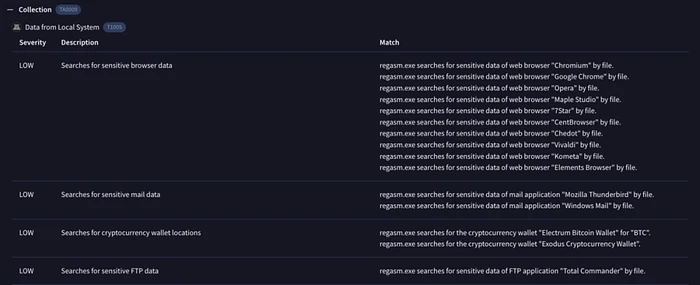 沙箱分析表明,该恶意软件表现出 典型的信息窃取行为,包括: