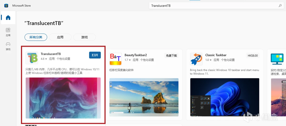 安装完成后,TranslucentTB 会自动运行,并在系统托盘中显示一个图标。