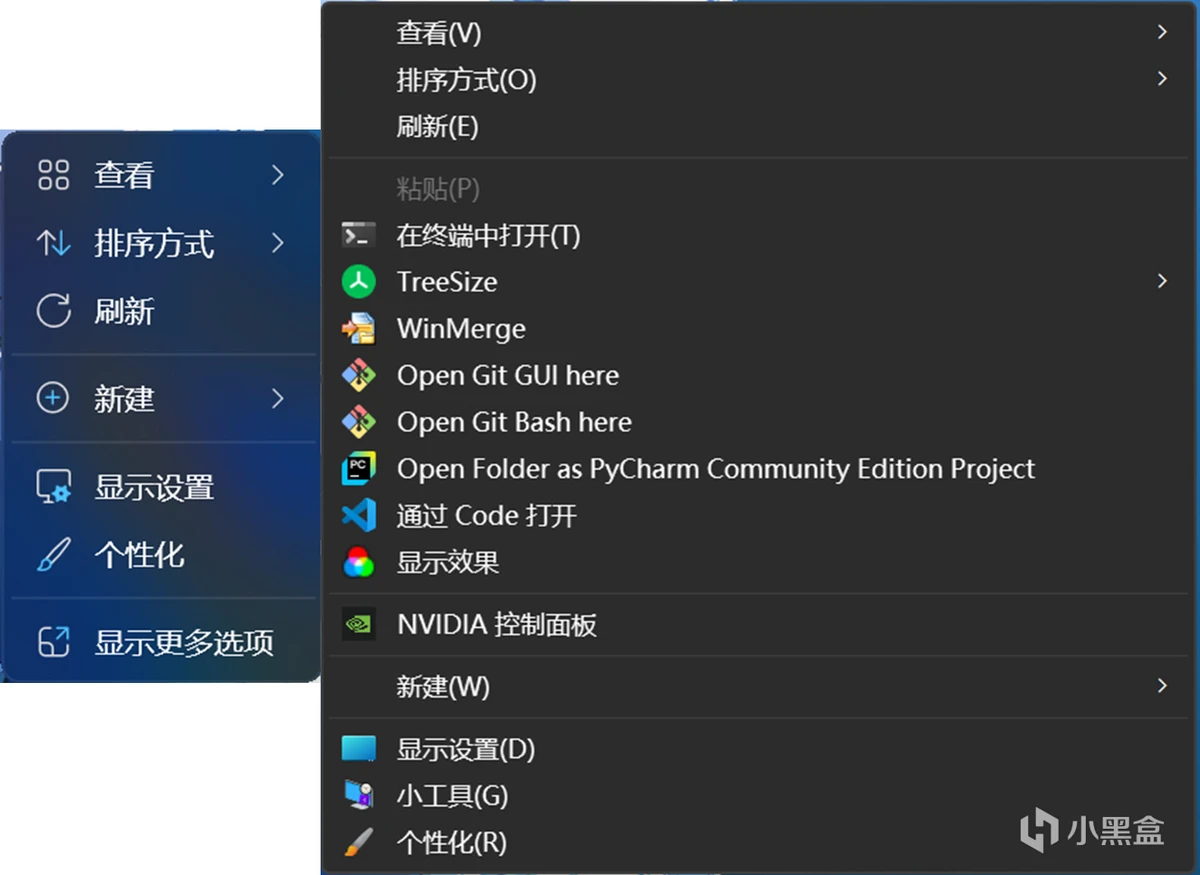 原生右键菜单展开前后对比