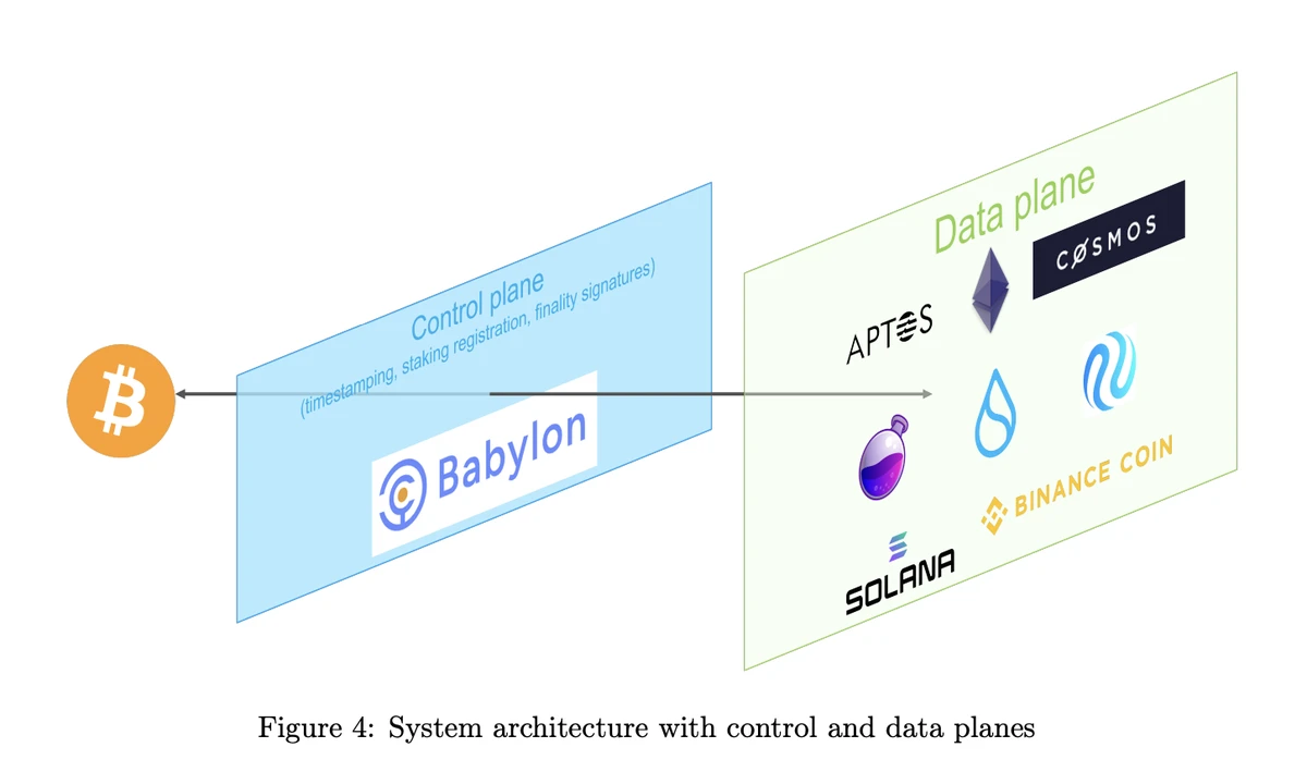 安全平面的主要角色是确保整个 Babylon 系统的安全性和完整性。通过将来自 Babylon Chain 的检查点数据记录到 Bitcoin 区块链,安全平面提供了一个不可变和防篡改的 PoS 链状态记录。