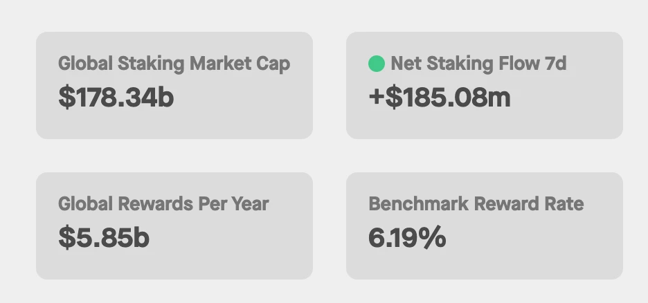 针对以太坊、Aptos、Sui、Cosmos 等主要网络,整体质押市场市值已超过 870 亿美元,对于整个 PoS 网络则为 1700 亿美元。这一市值预计会随着加密采纳趋势而持续快速增长。