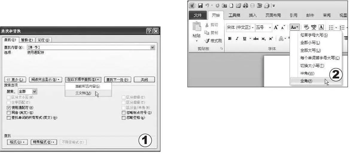 Step5:单击“在以下项中查找”,然后单击“主文档”(如图1),则文档中所有全角数字悉数被选中了。