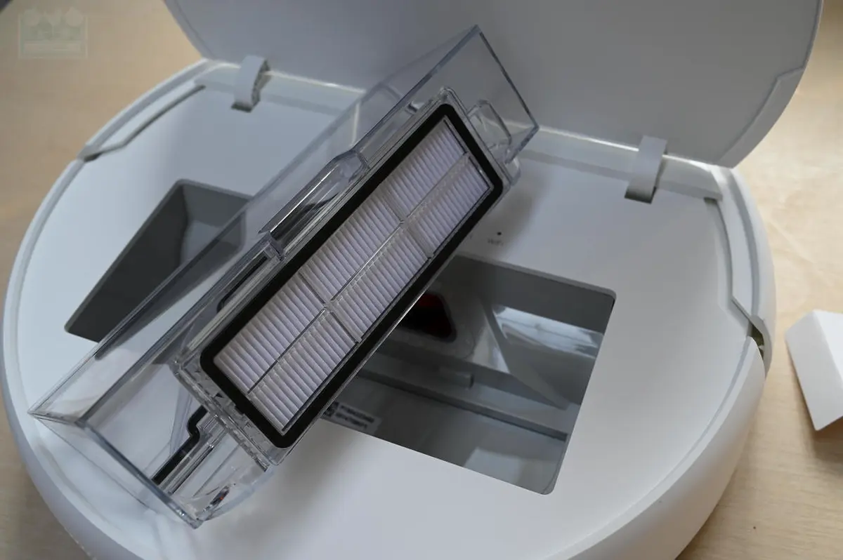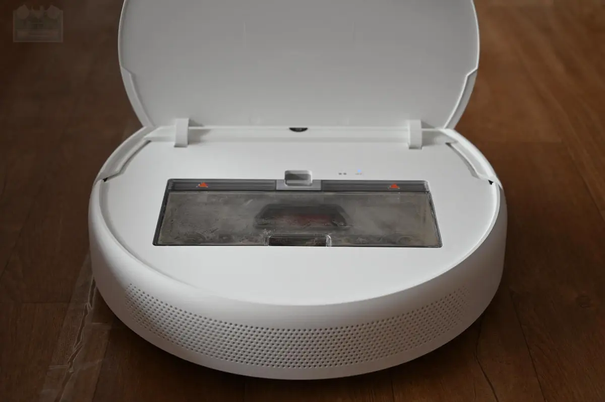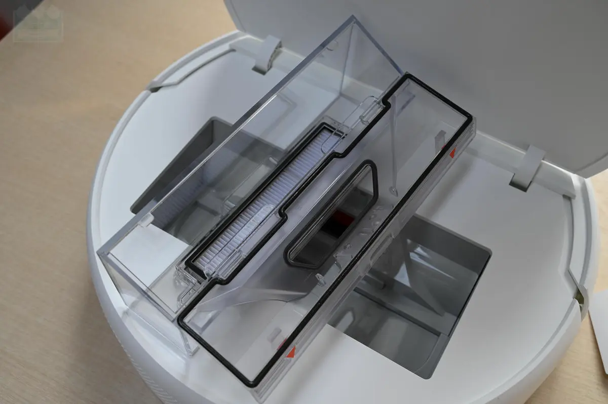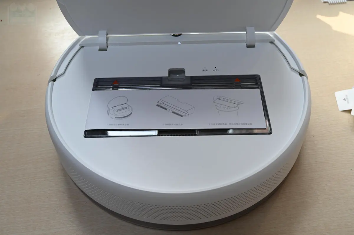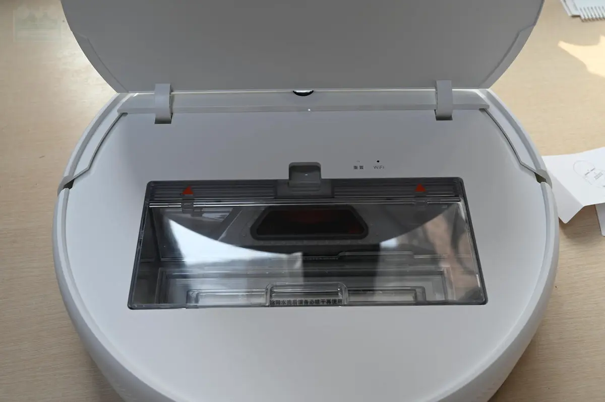 和以往几款米家扫拖机器人一样,米家扫拖机器人1C也采用了顶部掀盖设计,可以直接取出尘盒,这一点在日常使用当中比较方便,更加易于倾倒尘盒,对于需要深入清洁的房间来说就更加便捷了,当然,尘盒本身容量不小,有着600毫升的容量,只要不是遍地瓜子壳,否则足以确保一般房间的自动清洁需要,因为在智能路径规划的指导下,这台扫地机不会顽固的重复清扫,而是能够高效率的对全屋进行清扫。另外,在设计上与之前的不同之处在于,这款扫地机的盖子没有把开关和摄像头覆盖到。因为这款扫地机吸力比较强,所以绝大多数掉落在地面的细小物件都会被吸进尘盒,所以在倾倒之前最好先检查一下有没有遗落在角落的重要物品被1C捡到了。