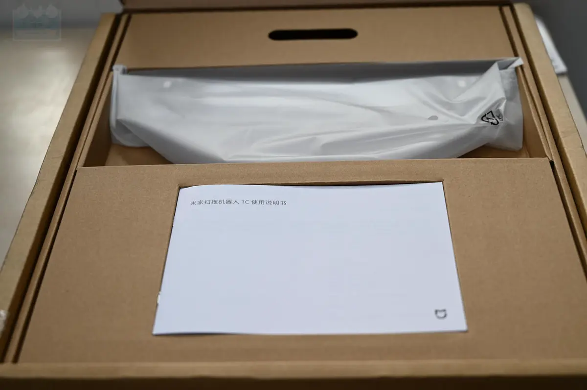 这款扫地机的包装和前几代米家扫拖机器人类似,提供的配件包括充电座和电源线、水箱和拖布、边刷以及清理工具,当然还有说明书,需要注意的是,这款扫地机只有一只边刷,所以在使用中需要注意维护。总体来看,这款扫地机的配件比较标准,其中电源线的质量比较高。