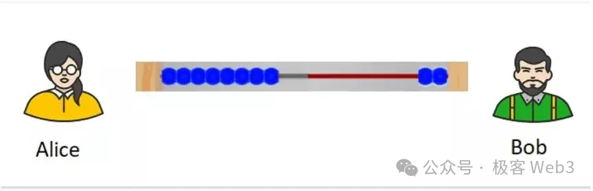 比如说,双方开始时各有100块,之后Alice向Bob转账50,之后Alice又向Bob转了10块钱,而后Bob又给Alice转了30块,最终双方余额变为:Alice—70,Bob—130。大家不难发现,二人的余额总和不变,上图中算盘珠子来回推拉的案例可以很好解释这点。
