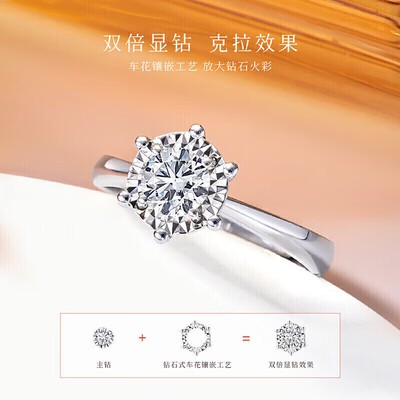 在品质方面,R13384同样表现出色。它采用了pt950铂金材质,这种材质不仅具有高度的纯净度,还具有优异的耐磨性和抗腐蚀性,能够确保钻戒长久如新。同时,这款钻戒的颜色为I-J色,净度为SI/小瑕,虽然不算顶级品质,但在同价位产品中已属上乘之作。而且,它还附带有GIC/中国地质大学(武汉)珠宝检测中心的证书,为消费者提供了有力的品质保障。