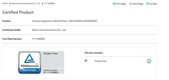 小米在官网微博中已经透露了关于小米14 Ultra信息,所以新机上市应该不会太晚。根据德国莱茵的官方消息,目前小米14 Ultra(型号为24030PN60G)获得了莱茵无频闪认证,表明这款手机可以有效减轻屏幕给用户带来的视觉疲劳。