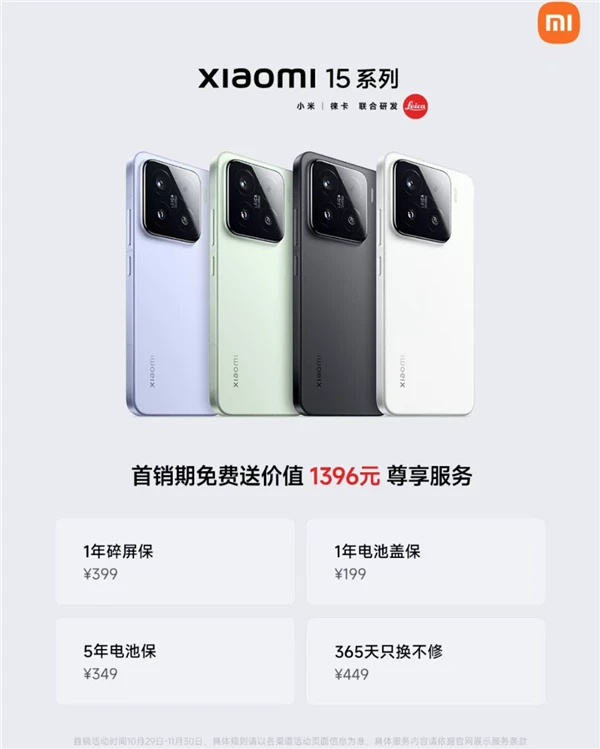 快科技11月13日消息,小米15系列于10月29日发布,首销期间(10月29日-11月1日)购机免费赠送价值1396元尊享服务权益。
