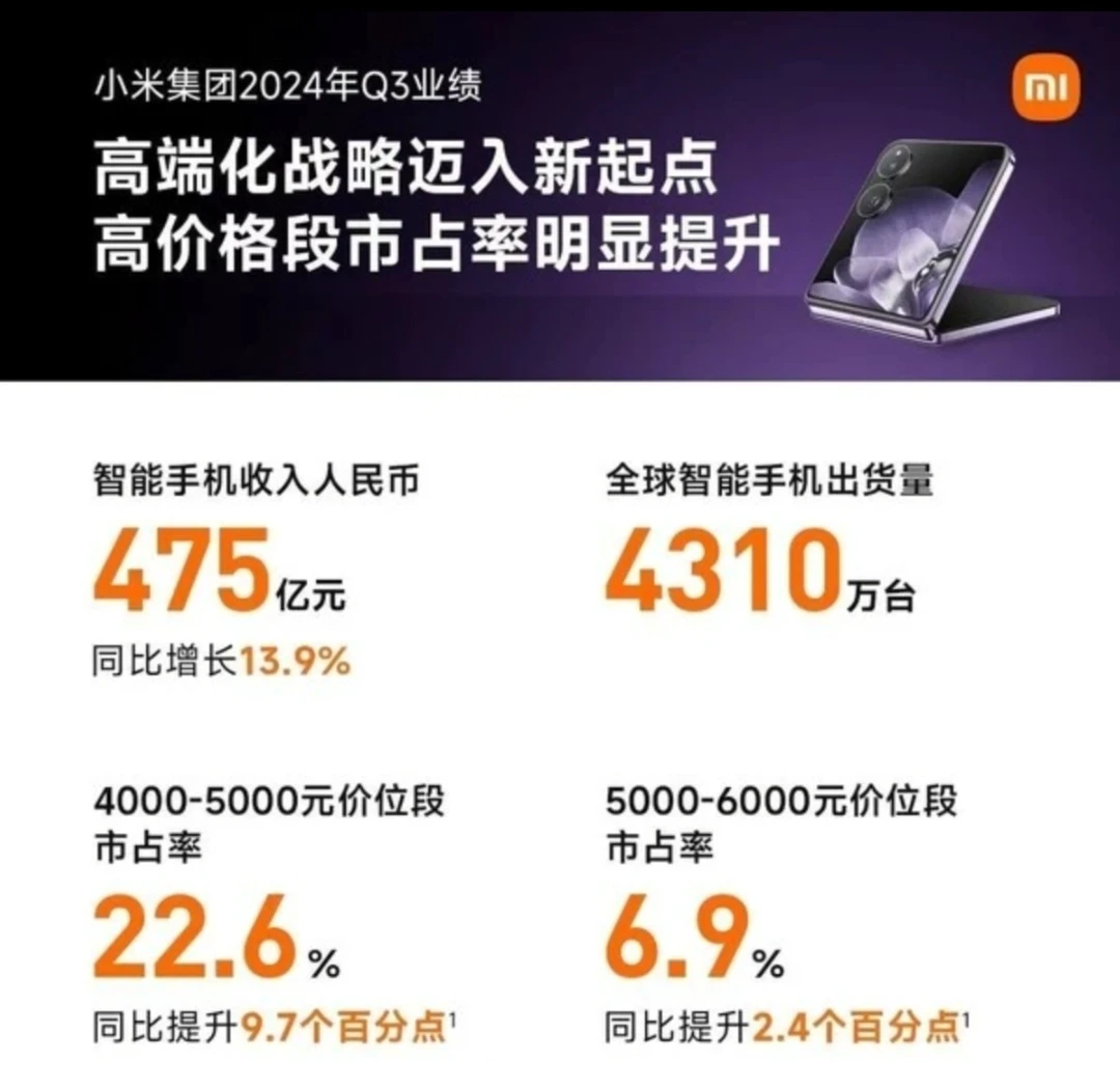 这就不得不提最近风头正盛的小米手机了。凭借小米汽车的发力,小米手机的形象也得到了进一步的提高。从小米13系列开始,14,15都保持着不错的销量。有人说是因为小屏幕,但我觉得更多的是小米硬件和软件的结合,而且外观很不错。尽管小米15因为没有芯片首发的优势,竞争力可能减弱了,但是销量对比上一代还是增加了不少。按照小米官方的说法来看,小米高端确实是成了。