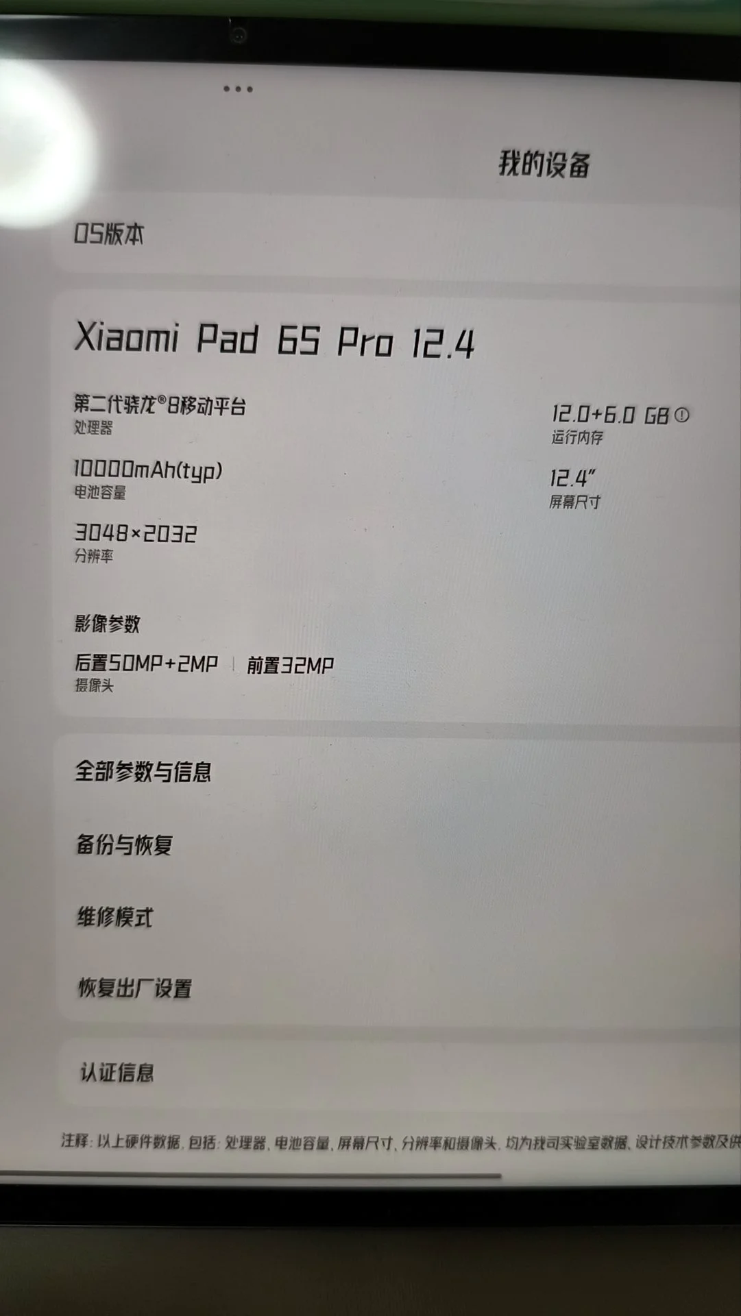 过年后拿压岁钱和自己攒的钱整了台小米平板,尽管今年已经出第七代了但是相比第六代(特指6s)原地退步,所以闲鱼淘了一台6spro 12.4,12+512,平板基本配置:120W 充电,10000的电池,144刷新率的屏幕,有指纹解锁,骁龙8Gen2.