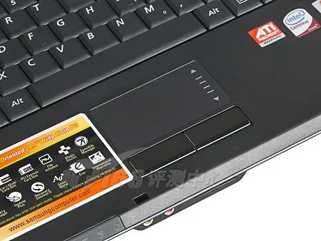 三星R25的按键键程较长,底部支撑充足,只是弹性表现略显乏力。触摸板部分手感不错,移动灵活。触摸板部分同时提供滚动区域,方便用户在无鼠标状态下浏览网页、编辑文档。