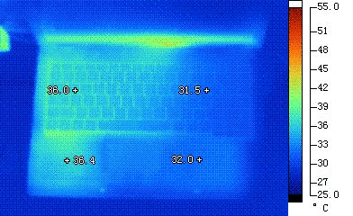 温度测试中我们将笔记本电脑划分为键盘左侧、键盘右侧、手托左侧、手托右侧、CPU出风口及机身底部对应CPU位置进行测试。对于TabletPC、UMPC、薄板电脑和特殊形式的笔记本电脑,一般对应的测试点为屏幕左上方、屏幕右上方、屏幕左下方、屏幕右下方、出风口和对于处理器机身背部,测试使用器材为testo 825-T2红外测温仪,测试标准如下: