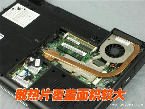从上面的图片我们可以看出,联想这款Ideapad Y330笔记本电脑内部散热片的覆盖面积较大,散热性能较好,用户不必为高温而担心。这款本内部标配1根2GB内存,并且预留了一个内存插槽,方便了用户日后的升级使用。#p#副标题#e#
