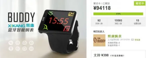 熙康BUDDY智能腕表之前已经在欧洲进行了众筹销售,获得1万个支持。在国内众筹网站——点名时间进行的众筹也已取得了不俗的成绩,引爆众多网友期待上市的热情。到底熙康BUDDY能否打败三星Galaxy Gear和索尼SmartWatch2,成为用户心中最完美的偶像腕表呢?让我们拭目以待!