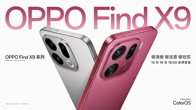 作为 OPPO 品牌三十周年巅峰之作,「演唱会神器」Find X9 系列将于 10 月 16 日 19:00 全球首发。其不仅是影像利器,更重构旗舰性能与续航标准。全系搭载天玑 9500 旗舰芯与新一代潮汐引擎,为 2 亿超清照片、4K 超清实况照片、8K 超清照片,以及 4K 超清视频的录制,提供稳定算力支撑,长时间拍摄也流畅不卡顿;配合全系 7000+ mAh 大容量冰川电池,甚至OPPO哈苏专业影像套装还内置 2000mAh 电池可为手机充电,彻底解决演唱会全程拍摄的续航焦虑,更有全系 1nit 明眸护眼屏,让每一个高光瞬间都能完美显示。更多 Find X9 系列产品信息,敬请持续关注 OPPO 。